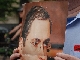 Также они держали плакаты: "Мертвые души судят ЮКОС! Гоголь отдыхает!", "Мертвые души чекистов прочь от ЮКОСа", "Ходорковскому свободу, истинных коррупционеров на его место", "Долой хамовническое правосудие", "Долой банду Путина" и "Путин палач".