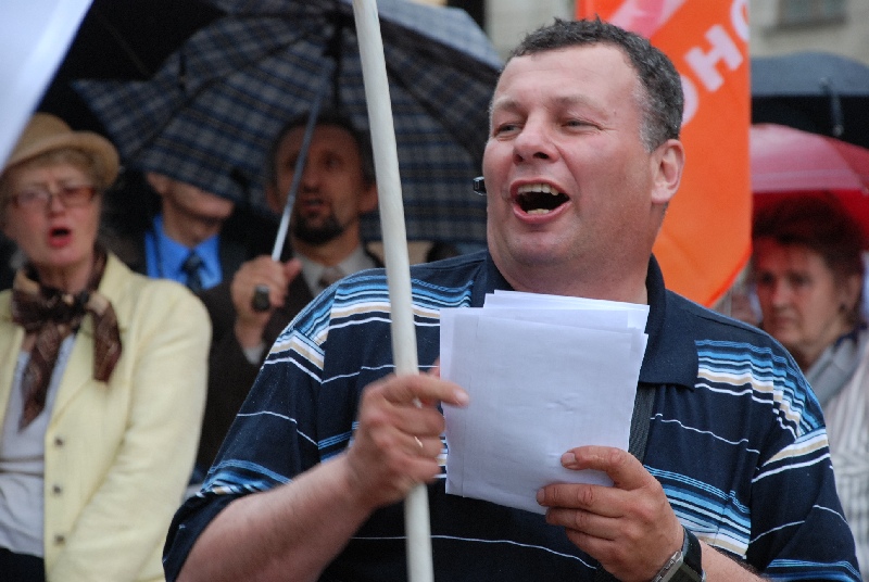 Всего в акции приняли участие около 60 человек. Среди них были активисты ОГФ, "Солидарности", "Обороны" и Союза солидарности с политзаключенными. Участники держали протерты Ходорковского и Лебедева. Многие из них были одеты в футболки с надписью "Свободу Ходорковскому".